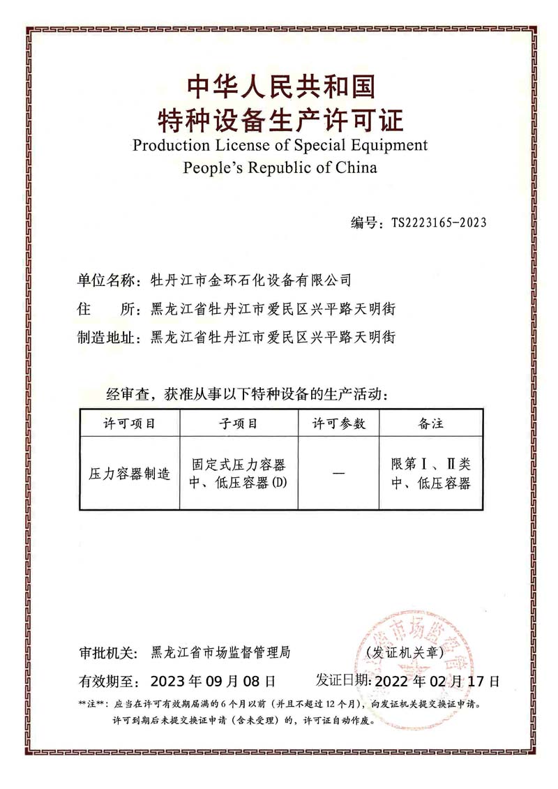 Mudanjiang Jinhuan Petrochemical Equipment CO.,LTD 牡丹江市金環(huán)石化設備有限公司 版權(quán)所有 www.mcsxxw.com
